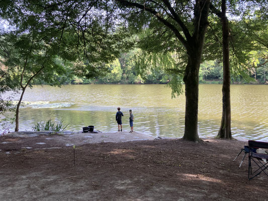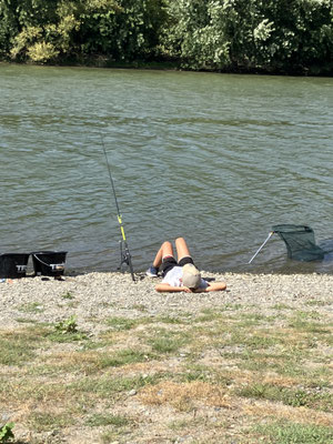 Attente ou détente? Nos pêcheur, ci-dessus, à l'affût de la brême à la pêche au feeder!